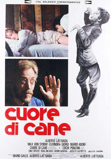 Всего у книги две экранизации - итальянская и советская. Если первая не представляет из себя ничего выдающегося, кроме роли профессора Преображенского в исполнении великолепного шведского актера Макса фон Сюдова, то отечественный вариант, сохраняя полную аутентичность с книгой, получился действительно прекрасной экранизацией. Единственный эпизод, отсутствующий у Булгакова - когда в конце первой части Шариков исполняет в университетском амфитеатре уже ставшую визитной карточкой подобных ему «Эх, яблочко» - абсолютно не портит аутентичный сценарий. Поэтому «Собачьесердце» - это однозначно лучший советский фильм, который вовсе и не является советским по своему духу, ибо полностью основан на сценарии русского писателя-аристократа, более того, не является из-за этого самостоятельным фильмом, что в данном случае идет ему только в плюс. Режиссер итальянской версии наоборот, основной посыл Булгакова переиначил и попытался заигрывать с человечностью Шарикова (даже изменив его имя на Бобикова). Здесь третьим основным персонажем становится не доктор Броменталь, а служанка Зинаида, которую играет актриса с выразительной красивой внешностью и которая испытывает к Шарикову симпатию, и возможно, даже влюбленность, то есть в целом, здесь обыгрывается некий аналог «Красавицы и чудовища», что в контексте «Собачьего сердца» выглядит просто нелепо. Нелепо здесь выглядит и все остальное: милые загородные виды Италии вместо мрачной России, массовка актеров с характерными итальянскими лицами, слишком быстрая работа камеры и диалоги, превращающие артхаусное кино в софт-боевик. И хотя Макс фон Сюдов в роли Преображенского создает тот необходимый контраст между ним и Шариковым, получилось так, что он имеет контраст вообще со всеми остальными лицами на экране, что с долей черной иронии говорит о том, что такие образы, как образ профессора в исполнении фон Сюдова просто чужды советскому миру.
